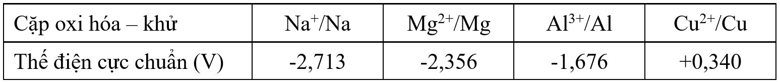Cho các cặp oxi hoá - khử và thế điện cực chuẩn tương ứng:Ion kim loại nào sau đây bị khử