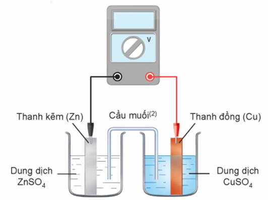 | c) Cầu muối cho phép các ion dịch chuyển qua vừa có tác dụng đóng kín mạch, vừa có tác dụng cân bằng điện tích mỗi dung dịch. |