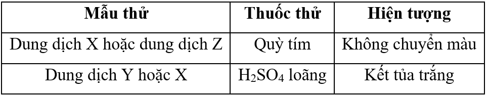 | d) Trộn Z với X hoặc Y đều thu được kết tủa trắng. |