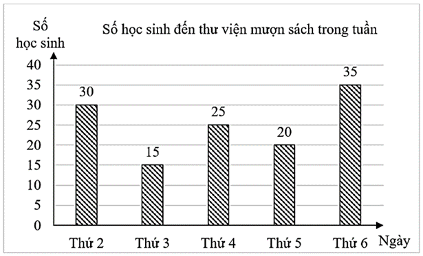 Số học sinh khối 9 đến thư viện của trường mượn sách vào các ngày trong tuần được biểu diễn ở biểu đồ dưới đây: