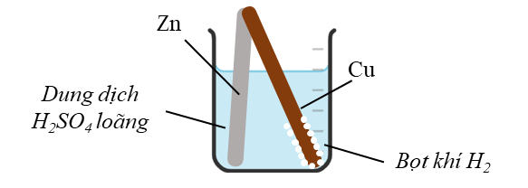 Một học sinh làm thí nghiệm như sau: nhúng thanh kẽm và thanh đồng vào dung dịch sulfuric acid loãng. Khi cho hai đầu thanh kẽm và thanh đồng tiếp xúc với nhau thì thấy bọt khí hydrogen thoát ra ở xung quanh thanh đồng.