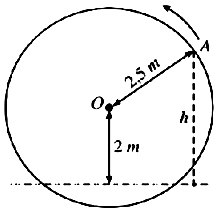 Một chiếc guồng nước có dạng hình tròn bán kính \(2,5{\rm{\;m}}\); trục