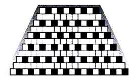 Một bức tường trang trí có dạng hình thang, rộng \(2,4{\rm{\;m}}\) ở đáy và rộng \(1,2{\rm{\;m}}\) ở đỉnh (hình vẽ bên). Các viên gạch hình vuông có kích thước \(10{\rm{\;cm}} \times 10{\rm{\;cm}}\) phải được đặt sao cho mỗi hàng ở phía trên chứa ít hơn một viên so với hàng ở ngay phía dưới nó.