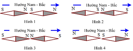 Hai kim nam châm nhỏ đặt trên Trái Đất xa các dòng điện và các nam châm khác, đường nối hai trọng tâm của chúng nằm theo hướng Nam – Bắc địa lí. Nếu từ trường Trái Đất mạnh hơn từ trường kim nam châm, khi cân bằng, hai kim nam châm đó sẽ có dạng như