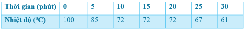 Một tinh thể bị nấu chảy thành chất lỏng nóng và sau đó nguội đi. Bảng bên dưới ghi lại nhiệt độ của chất lỏng đó theo thời gian.