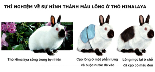 Gene quy định màu lông của thỏ Himalaya chịu ảnh hưởng bởi nhiệt độ.