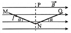 Hai dây dẫn thẳng MN và NO được nối với nhau tại N và có dòng điện chạy theo chiều từ MNO