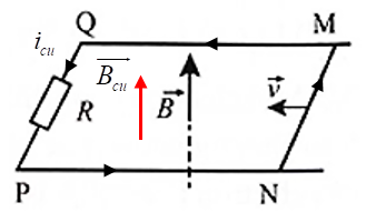 Một đoạn dây dẫn MN được đặt trên hai thanh kim loại và tạo thành một mạch kín. Tất cả được đặt trong một từ trường đều có cảm ứng từ B. Đoạn dây dẫn MN đang chuyển động với tốc độ v và khi chuyển động luôn tiếp xúc với hai thanh kim loại. Phát biểu nào sau đây là đúng?
