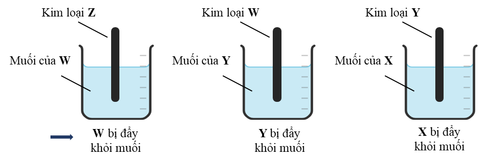 Tính khử của các kim loại theo chiều giảm dần: Z, W, Y, X