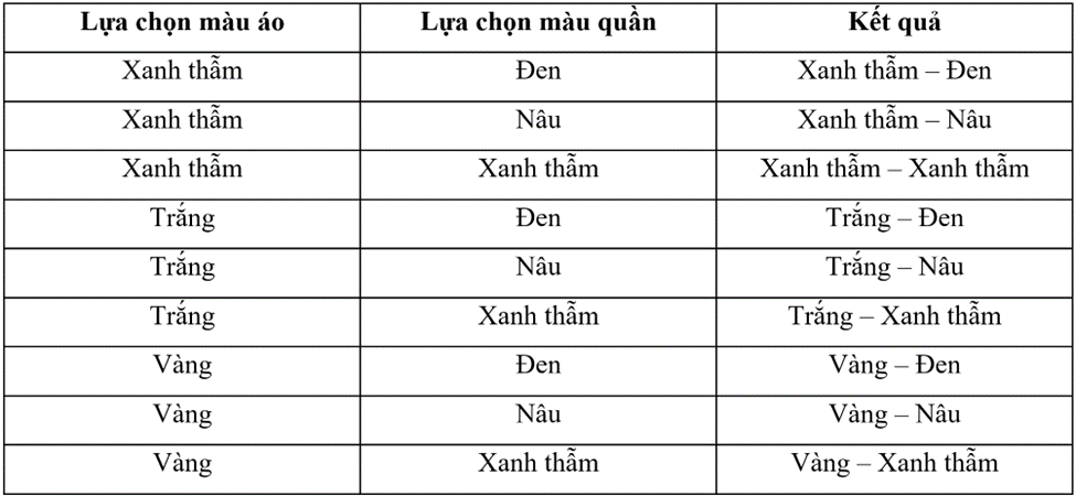 - Liệt kê các kết quả có thể lựa chọn của Hùng.