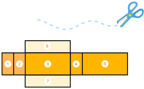 Quan sát hình, xác định hình khai triển của hình hộp chữ nhật rồi lựa chọn phần thừa cần cắt đi