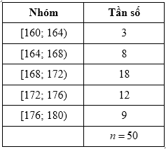 Trong một đợt khám sức khỏe của 50 học sinh nam lớp 12, người ta được kết quả như Bảng 1.