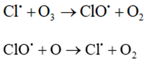 - Mỗi nguyên tử chlorine tự do lại phản ứng dây chuyển với hàng trăm ngàn phân tử ozone và biến ozone thành oxygen: