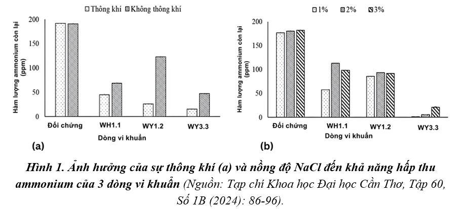 Dòng vi khuẩn đã hấp thu khoảng 75% ammonium trong điều kiện nồng độ NaCl 1% .