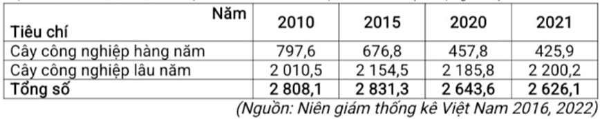 Diện tích trồng cây công nghiệp của nước ta giai đoạn 2010 – 2021