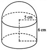 Hình bên minh họa bộ phận lọc của một bình lọc nước. Bộ phần này gồm một hình trụ và một nửa hình cầu với kích thước ghi trên hình. Hãy tính diện tích mặt ngoài của bộ phận này.