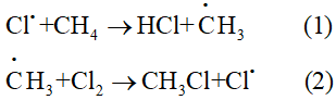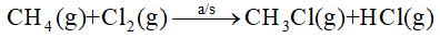 Phản ứng chlorine hoá methane CH4 xảy ra theo phương trình hoá học sau: