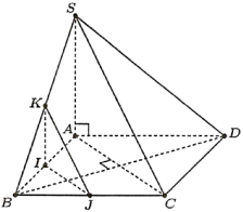 Cho hình chóp \(S . A B C D\) có đáy \(A B C D\) là hình vuông và \(S A \perp(A B C D)\). Gọi \(I, J, K\) lần lượt là trung điểm của \(A B, B C\) và \(S B\). Góc giữa hai đường thẳng \(K J, B D\) là bao nhiêu độ?