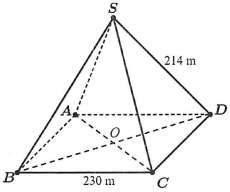 Kim tự tháp Kheops - Ai Cập có dạng hình chóp đều, đáy là hình vuông, mỗi cạnh bên của kim tự tháp dài 214 m , cạnh đáy của nó dài 230m. Tính góc giữa mặt bên và mặt đáy của kim tự tháp (tính theo độ, kết quả được làm trong đến hàng phần mười).