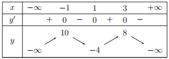 Cho hàm số \(y = f\left( x \right)\) có bảng biến thiên như hình bên. Giá trị lớn nhất của hàm số đã cho trên đoạn \(\left[ { - 2;4} \right]\) bằng