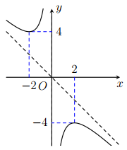 Cho hàm số \(y = \dfrac{{a{x^2} + bx + c}}{x}\,\,\left( {ac \ne 0} \right)\) có đồ thị hàm số như hình vẽ. Đường tiệm cận xiên của đồ thị hàm số đã cho là đường thẳng