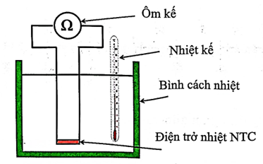 (2) Đổ nước mát vào bình cách nhiệt sao cho lượng nước ngập cảm biến của nhiệt kế. Sau đó khoảng 2 phút, đo nhiệt độ của nước và điện trở của điện trở nhiệt.
