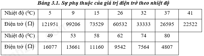 (3) Tăng nhiệt độ của nước trong bình bằng cách thêm từ từ nước nóng vào bình. Chờ nhiệt độ của nước trong bình ổn định. Đo nhiệt độ của nước và điện trở của điện trở nhiệt.