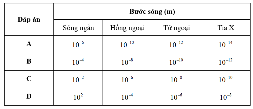 Quan sát bảng liệt kê bước sóng của các sóng điện từ