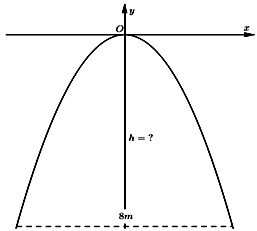Một chiếc cổng parabol dạng \(y = - \dfrac{1}{2}{x^2}\) có chiều rộng \(d = 8m\). Hỏi chiều cao của chiếc cổng là?