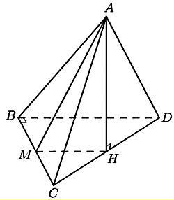 Cho tứ diện ABCD có BCD là tam giác vuông tại đỉnh \(B\), cạnh \(CD = a,BD = \dfrac{{a\sqrt 6 }}{3}\), \(AB = AC = AD = \dfrac{{a\sqrt 3 }}{2}\). Tính cosin của góc nhị diện \(\left[ {{\rm{A}},{\rm{BC}},{\rm{D}}} \right]\).