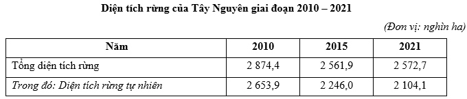 Cho bảng số liệu:Vẽ biểu đồ thể hiện diện tích rừng của Tây Nguyên, trong đó có diện