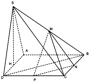 Cho hình chóp \({\rm{S}}.{\rm{ABCD}}\) đáy là hình vuông cạnh \(a\). Mặt bên SAD là tam giác đều và