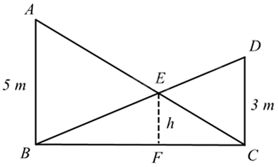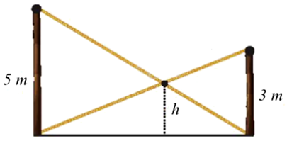 Có hai chiếc cột dựng thẳng đứng trên mặt đất với chiều cao lần lượt là 5m và 3m. Người ta nối hai sợi dây từ đỉnh cột này đến chân cột kia và hai sợi dây cắt nhau tại một điểm.