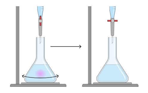Bước 3: Tiến hành chuẩn độ cho tới khi nhìn thấy sự đổi màu bền của dung dịch trong bình erlen.