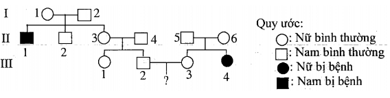 Cho sơ đồ phả hệ mô tả sự di truyền một bệnh ở người do một trong hai allele của một gene quy định, allele trội là trội hoàn toàn.