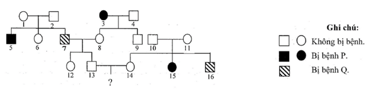 Sơ đồ phả hệ dưới đây mô tả hai bệnh di truyền ở người, trong đó có một bệnh P do gene