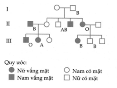 Một cụ bà không may bị tai nạn giao thông khi băng qua đường. Do bị chấn thương ở đầu và mất nhiều máu, bác sĩ yêu cầu gia đình nạn nhân truyền máu gấp cho cụ bà. Được biết thông tin về nhóm máu của gia đình này qua phả hệ như sau, tuy nhiên có một số người trong gia đình vắng mặt, một số khác chưa rõ thông tin về nhóm máu.