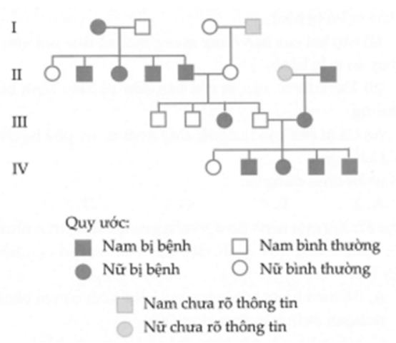 Cho phả hệ sau về bệnh X của một gia đình qua 4 thế hệ: