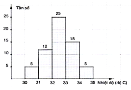 Biểu đồ hình bên thống kê nhiệt độ lúc 13 giờ mỗi ngày trong tháng 7 và tháng 8 năm 2024 tại một trạm quan trắc.