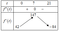 Thống kê số người nhiễm virus trong vòng 21 ngày ở một cộng đồng, người ta nhận thấy số người nhiễm virus vào ngày thứ \(t\) là \(f(t) = 21{t^2} - {t^3}\). Ta xem \(y = f(t)\) là một hàm số xác định trên \(\left[ {1,21} \right]\) và \(f'(t)\) là tốc độ nhiễm virus tại thời điểm \(t\). Tốc độ nhiễm virus lớn nhất vào ngày thứ bao nhiêu?