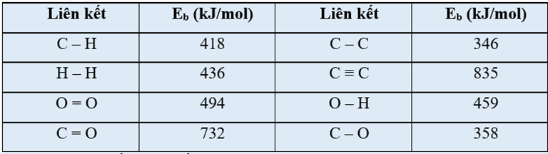 Cho bảng năng lượng liên kết như sau: a. Tính năng lượng tỏa ra khi đốt cháy