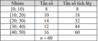 Lập bảng tần số tích lũy và tính số trung bình cộng, trung vị, tứ phân vị của mẫu số liệu đã cho.