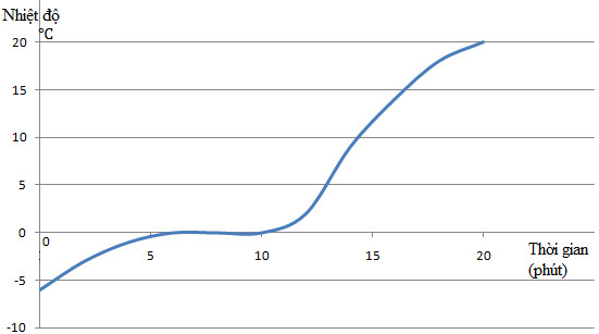 Cho đồ thị biểu diễn sự thay đổi nhiệt độ theo thời gian của nước đá như hình