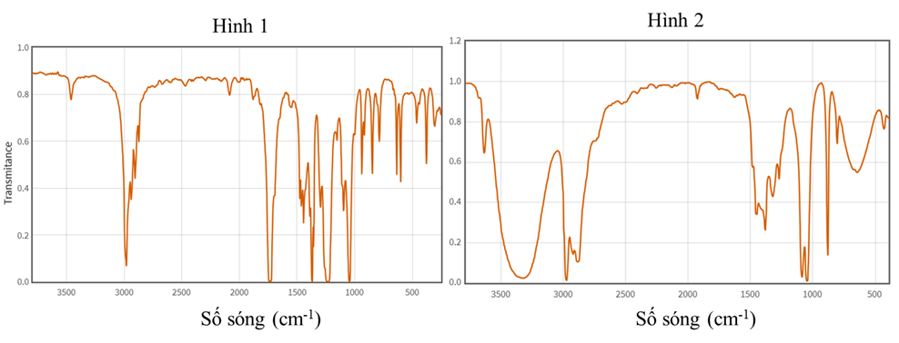 | a) Phổ IR trong hình 1 là của C2H5OH, hình 2 là của CH3COOH. |