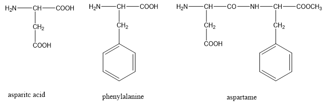 Sự kết hợp giữa aspartic acid và phenylalamine tạo thành peptide, peptide này có thể được chuyển đổi thành methyl ester gọi là aspartame. Công thức của aspatic acid, phenylalanine và aspartame được cho dưới đây: