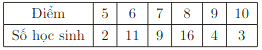 Thống kê điểm kiểm tra môn Lịch sử của 45 học sinh lớp 10A như sau: