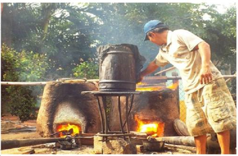 | c) Do dùng nhiên liệu hoá thạch để đun nóng chảy đồng, nên nếu thiết kế ống khói của cơ sở đúc đồng này không đạt tiêu chuẩn thì sẽ làm ảnh hưởng lớn đến môi trường và sức khỏe của người dân. | ||