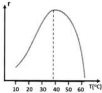 Sự phụ thuộc của tốc độ thủy phân tinh bột (r) vào nhiệt độ (T) của phản ứng được xúc tác bởi một loại enzyme amylase (có cấu tạo từ protein) được mô tả như hình bên. Phát biểu nào sau đây là đúng?