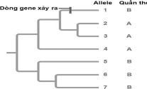 Cây gene cho thấy mối quan hệ tiến hóa giữa các allele ở hai quần thể A và B. Các biến thể của một gen.