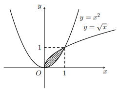 | a) Hình phẳng được tô màu trong hình trên được giới hạn các đồ thị \(y = {x^2};y = \sqrt x \). | ||
